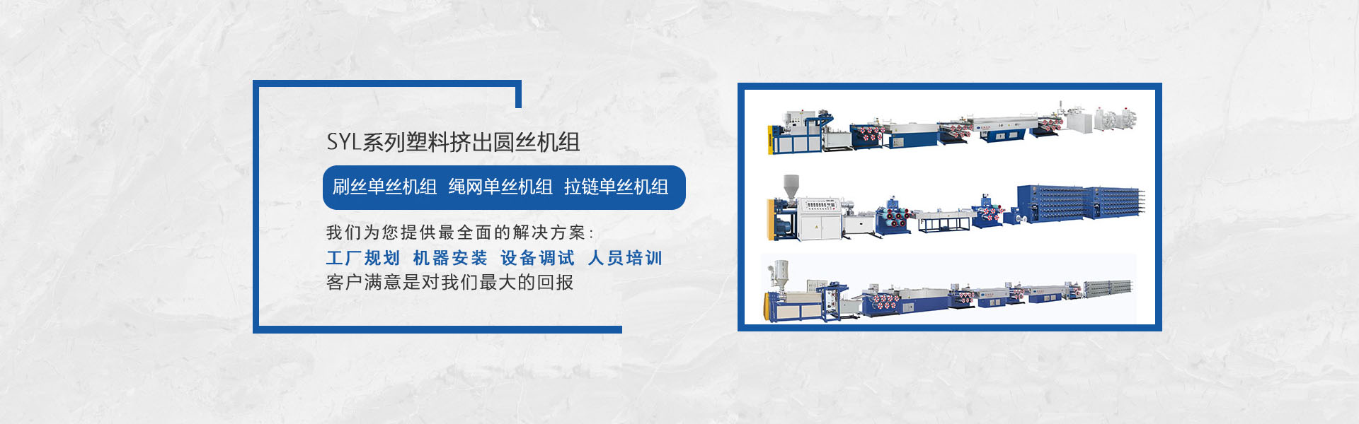 我司是專業(yè)生產(chǎn)塑料擠出圓絲、平膜扁絲機(jī)組等及其聚酯托幕線等配套附件、部件的專業(yè)化、正規(guī)化的企業(yè),公司集行業(yè)專家的豐富知識(shí),多年積累的經(jīng)驗(yàn),結(jié)合國(guó)外同行先進(jìn)技術(shù),研發(fā)制造出系列圓絲擠出機(jī)組,在主要技術(shù)指標(biāo)和性能上已處領(lǐng)先水平,我們正不斷優(yōu)化管理,強(qiáng)化細(xì)節(jié),使之能更好地為廣大用戶提供從技術(shù)、制造到工藝的全方位服務(wù)。